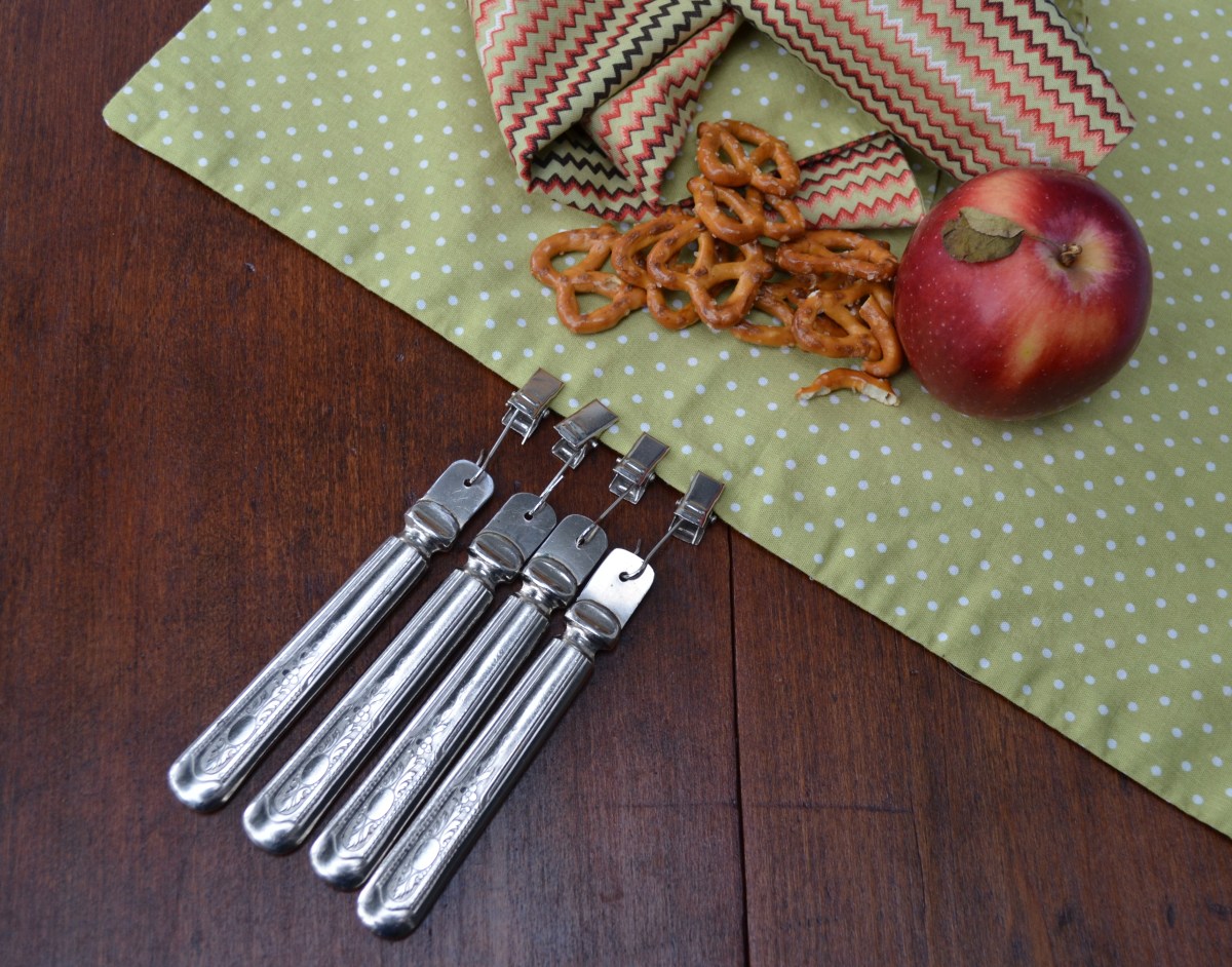 vintage knives re-imagined into tablecloth weights